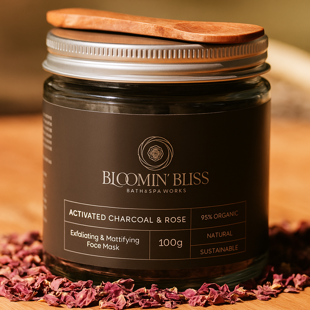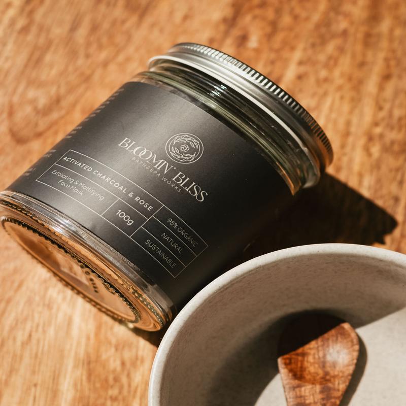 Activated Charcoal & Rose Face Mask | Exfoliating & Mattifying | Oily/Combination Skin | 100% natural 95% organic